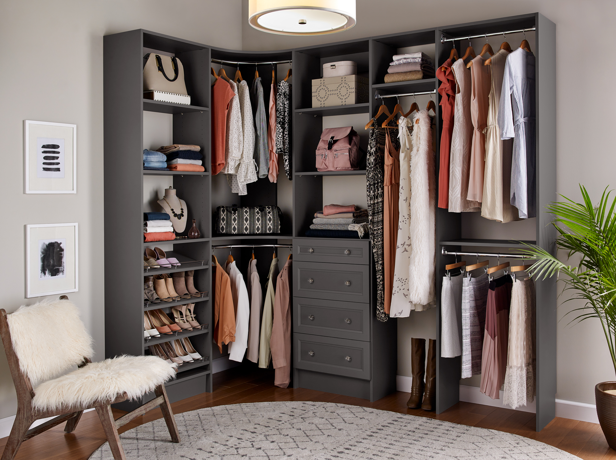 For all shapes and sizes of closets, board systems are popular as they can be upgraded with finish options to complement your taste and your space.