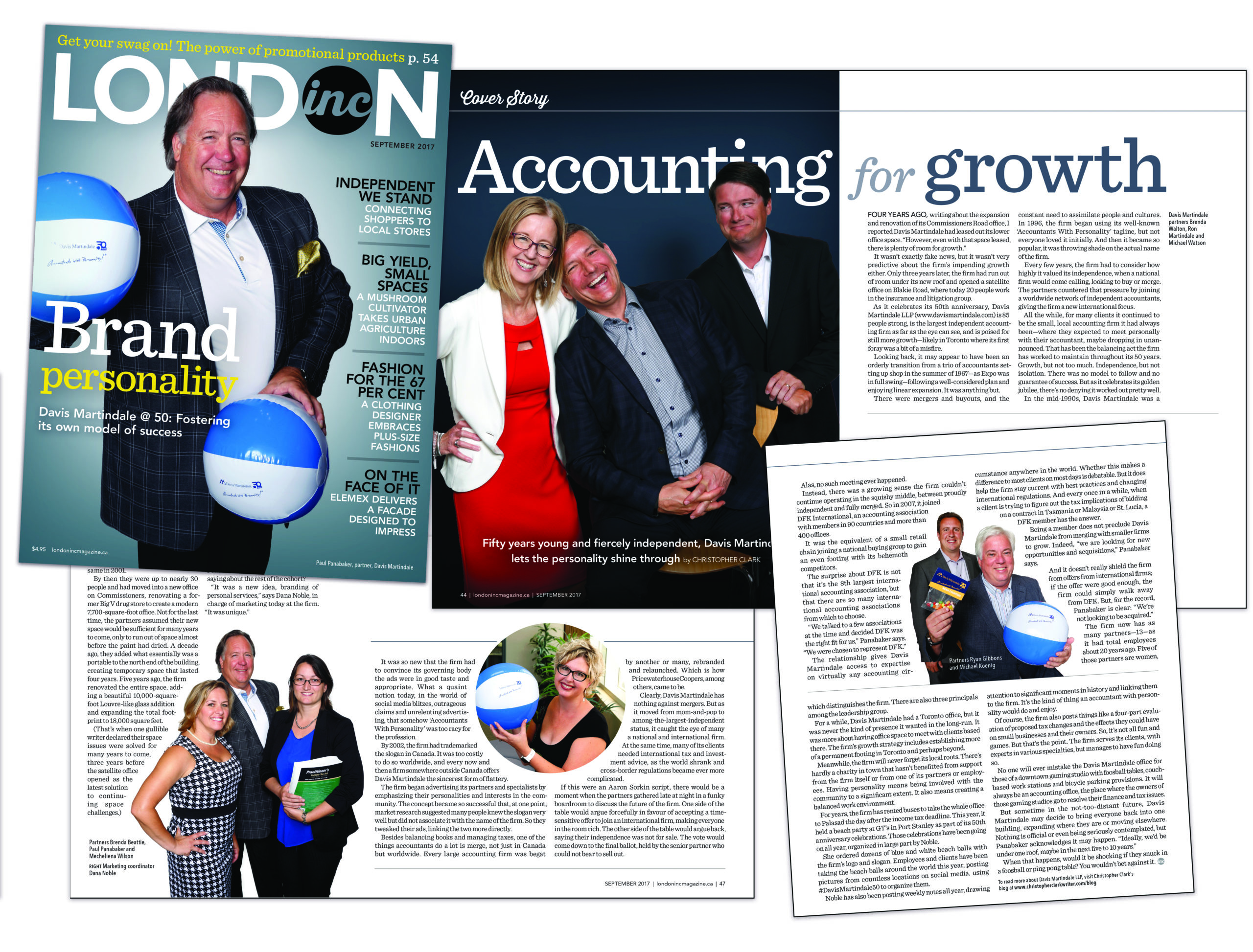 London Inc. Magazine (September 2017) – Accounting For Growth Article describing Davis Martindale’s continuous growth.