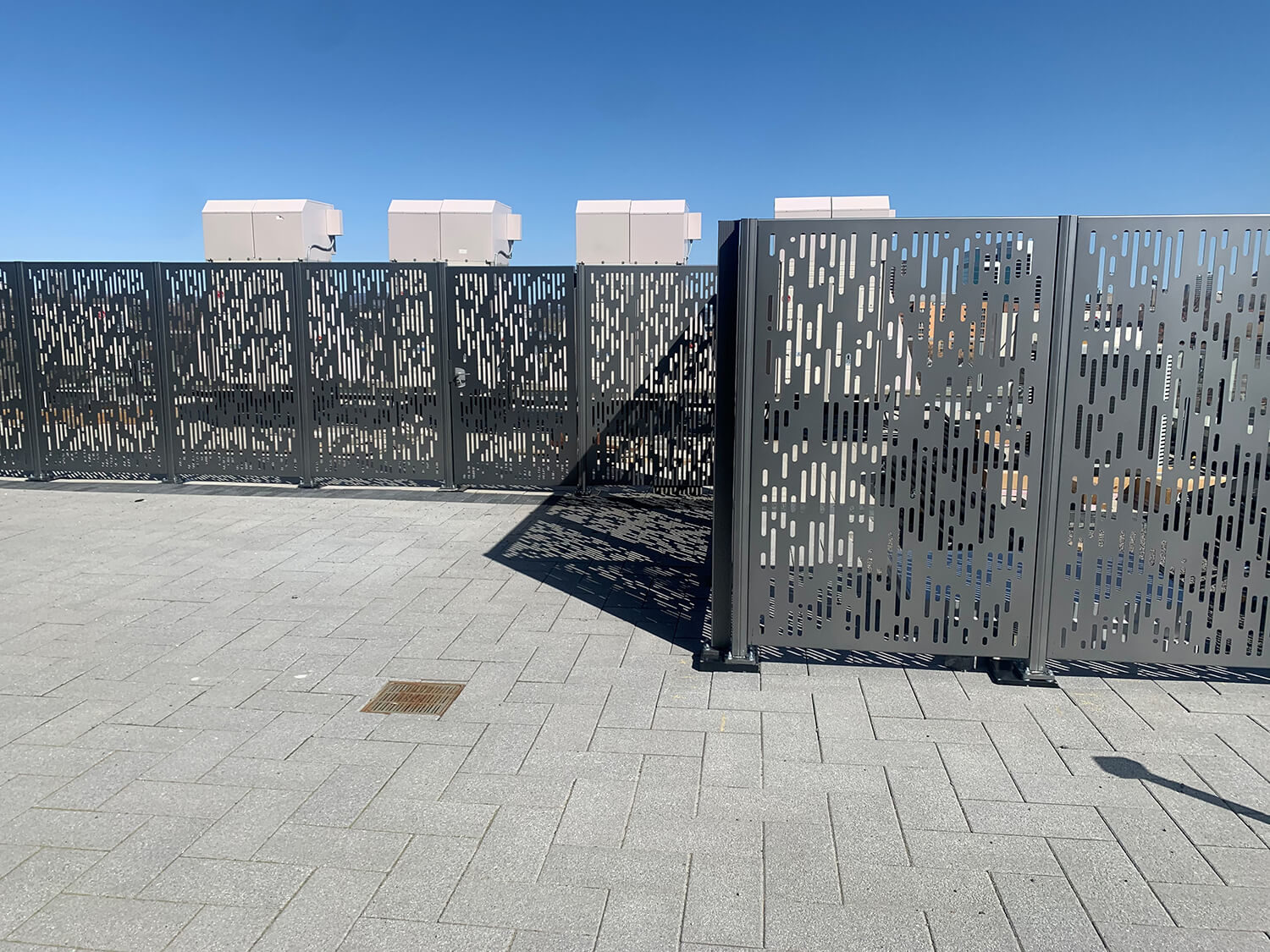 FLEXX steel privacy panels are available with a gate. Combine site security and privacy with the ease of an external lockable entry/exit point.