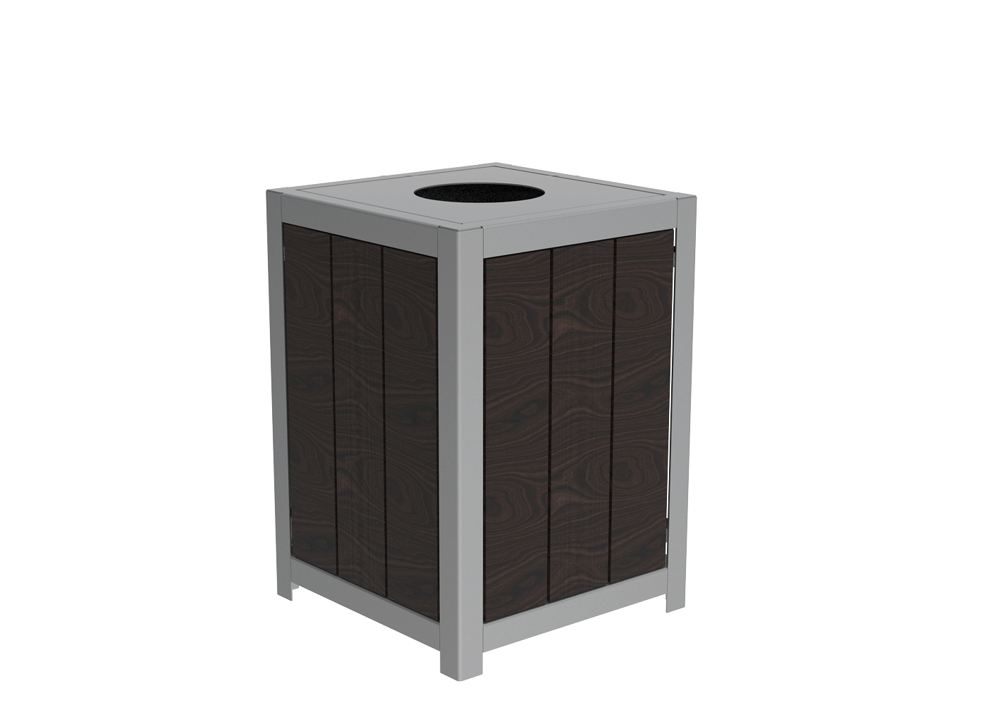 | MTR-1050-00066 | 1000 Series - 1050 Trash Receptacle: Formed Steel Frame, Thermally Modified Oak Wood Sides, Metal Lid, 1 x 32 Gallon Polyethylene Liner, Rain Shield, Vinyl Graphics | 21.1” (53.7cm) | 40.3” (102.2cm) | 21.1” (53.7cm) | 101lbs (45.8kg) |