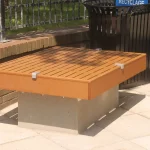 Custom platform benches mounted on concrete bases were created to offer a variety of seating arrangements throughout Ville de Gatineau.
